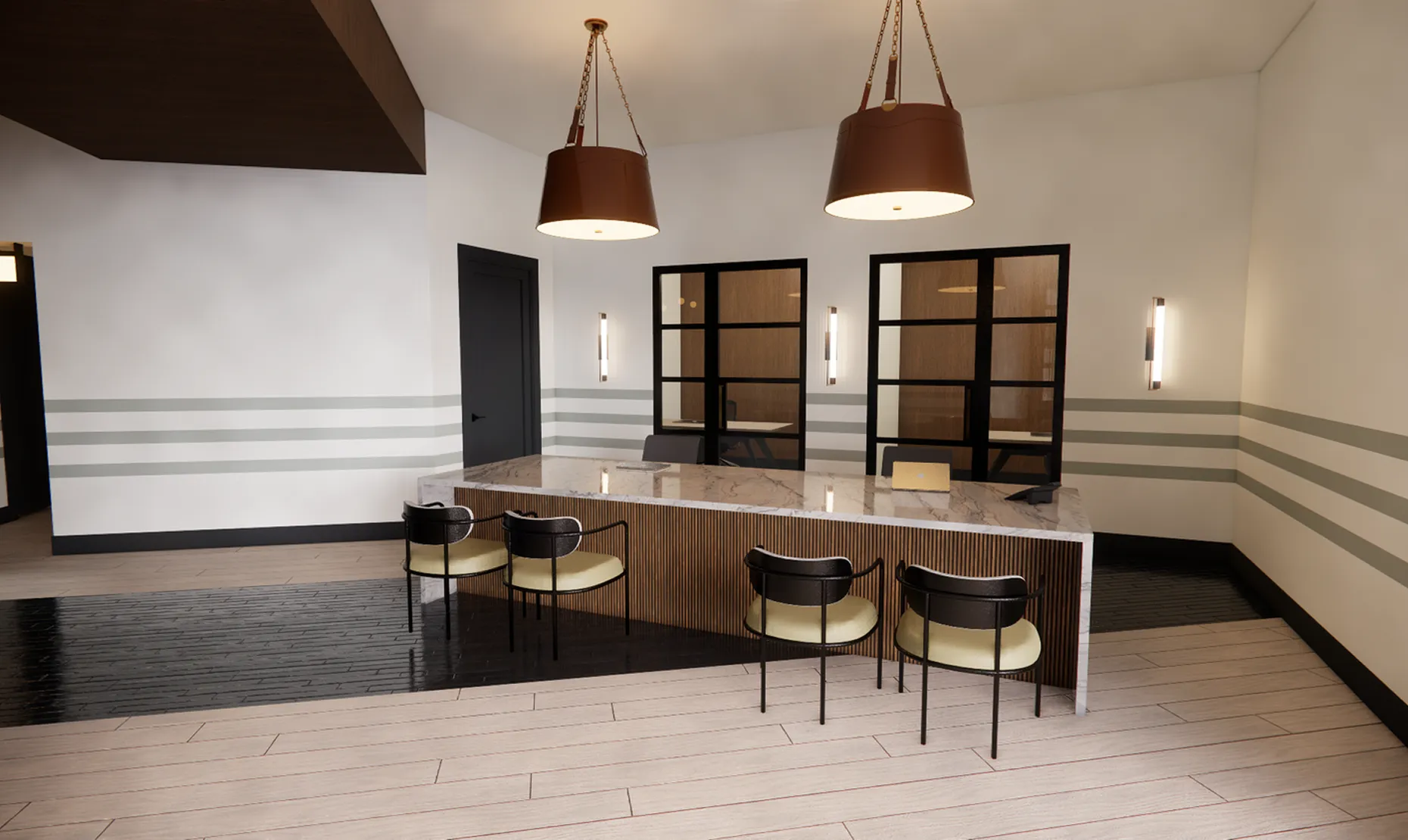 Full service interior design inclusive of Schematic Design, Design Development, Permit Drawings, Construction Documentation, Signage Design (Logo design and branding by others), and all FFE Procurement.